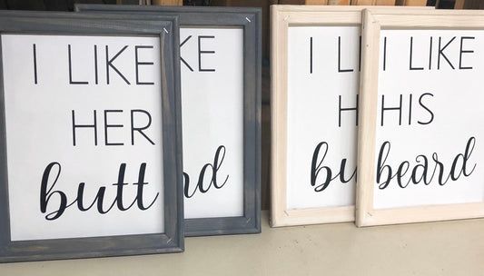 I Like Her BUTT / I Like His BEARD reverse canvas sign