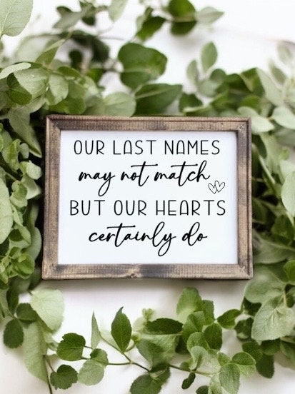 Our Last Names May Not Match Reverse Canvas Sign / Blended Family Sign